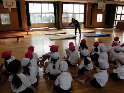 登ったり、とんだり、平均台を渡ったりマットをくるくる回ったり楽しんで活動しています。