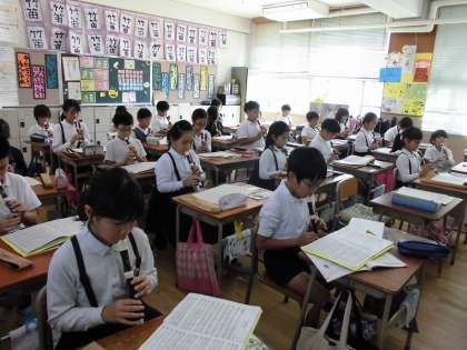 廊下を歩いているとリコーダーの笛の音に誘われて教室に導かれました。