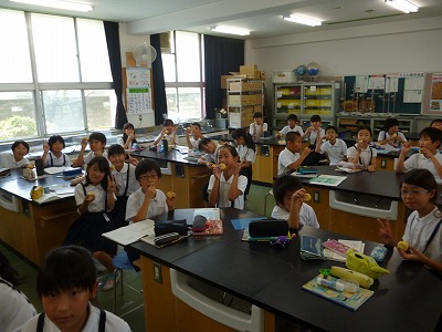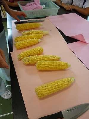 5年2組では、収穫したてのトウモロコシを、生のままでかじってもらいました。