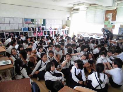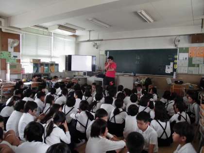 これから、総合の学習の時間に学習することを学年の児童にガイダンスを行いました。