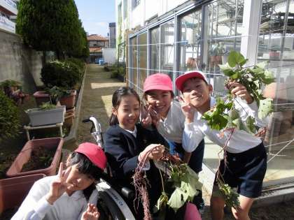 初めてイモのつるを引っ張る子どももいました。
