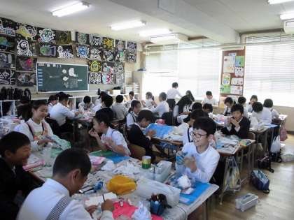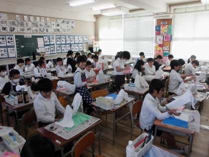 手に絵の具をつけて、思い切りよく仕上げている子もいました。