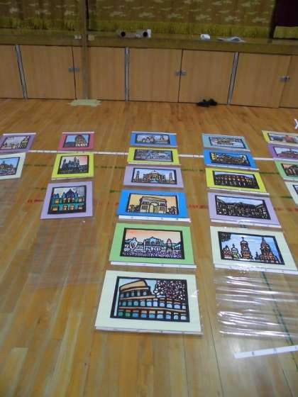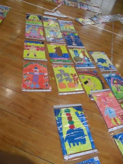 フロアを使って、はる準備をし、最後に掲示していきます。