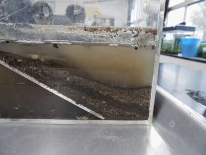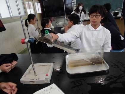 流れる水の働きで、土や砂が堆積することでできることを体感することができました。
