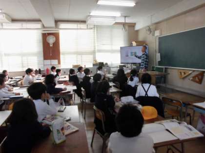 グループで学習したり、大型テレビを使ったりしてわかりやすく学習しています。
