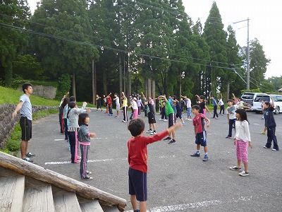 しっかりと体操をして、最後の日の活動に備えましょう。