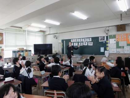 消しゴム、鉛筆などの文房具を英語のカードにして学習を深めていました。