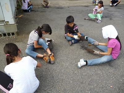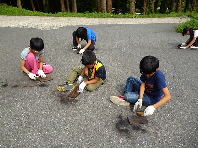 林間学習2日目 焼き板作り2