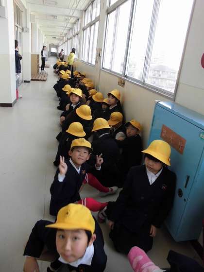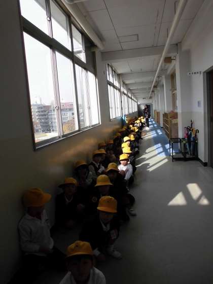 地震の避難訓練に引き続き、津波の避難訓練も行いました。