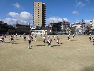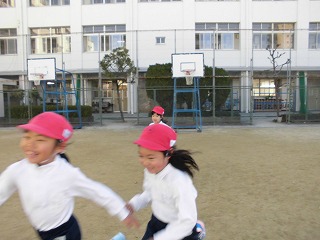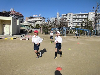 寒い中、まずかけ足をしました。最後まで頑張って走っていました。