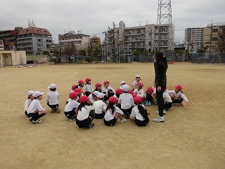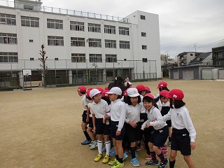 体育の時間はいろんなゲームをしながら準備運動をします。