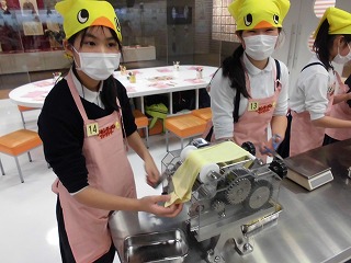 麺棒で伸ばしてから、製麺機で薄くしていきました。