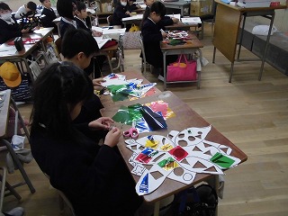 カッターナイフも上手につかって丁寧に作品を作っていました。
