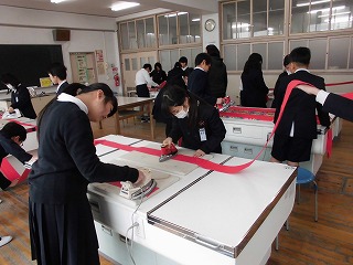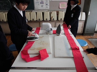 家庭科でアイロンがけの実習を行いました。