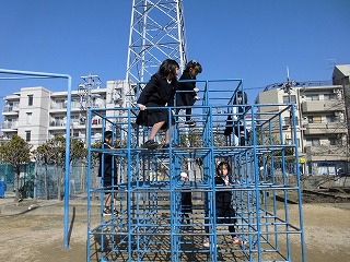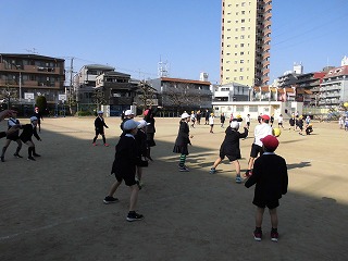 休憩時間に、運動場に出て子どもたちは活動しています。