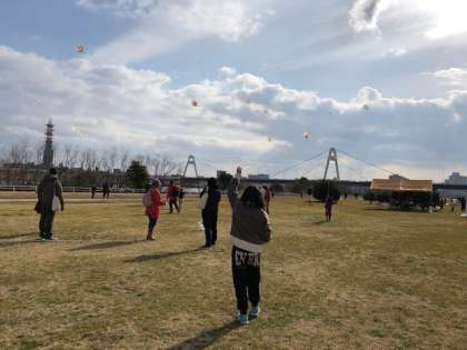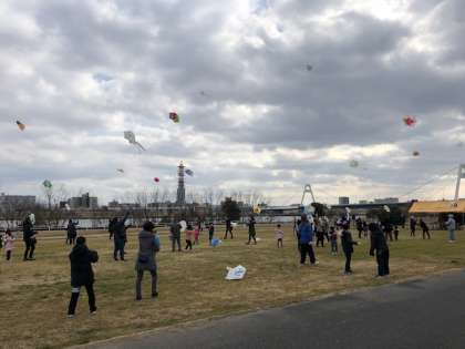2月10日(日)、淀川河川敷で東淀川区たこ上げ大会が行われました。