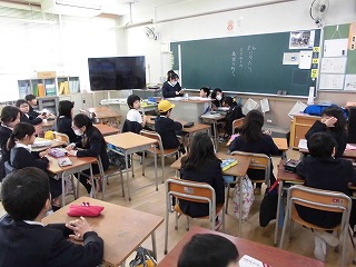 今日は教室で、6年生を送る会に向けての取り組みでした。今年一年お世話になった6年生に向けて感謝の気持ちをこめてメッセージや絵を作りました。