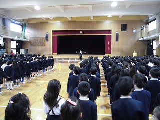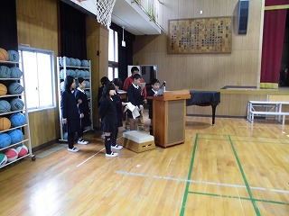 今日は、1〜5年生で、6年生を送る会の練習をしました。