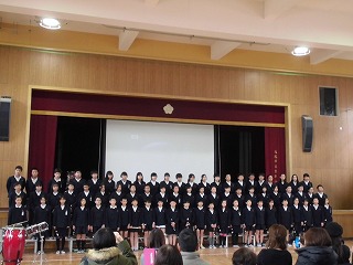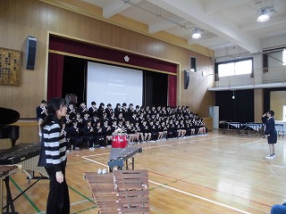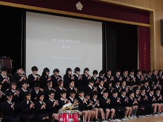 子どものリコーダー奏に合わせて、参観者が「やさしさにつつまれたなら」を歌いました。親子一緒に取り組むことができてとても良かったです。