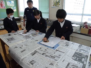 インクのついた版木に紙を乗せ、ばれんで擦り付けました。