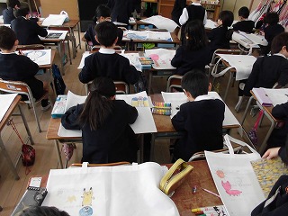 作品袋に、絵をかいています。