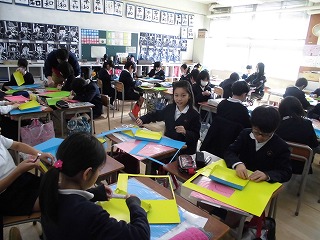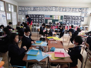 立体制作でコロコロがーれを作っています。平面の工作用紙をうまく組み合わせて。立体作品を作ります。