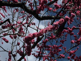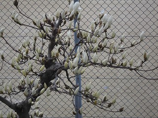 梅の花が咲き、白木蓮がつぼみをふくらませています。
