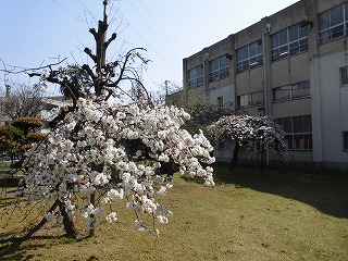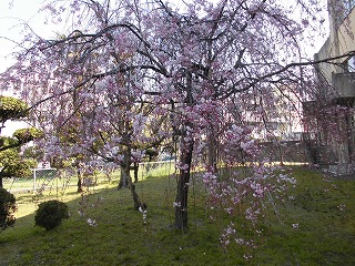 また、入ってすぐの枝垂れ桜も花を咲かせています。