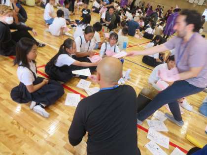 会場に入った瞬間、たくさんのC-NETの先生、楽しい音楽にまるで外国に行ったかのような雰囲気に飲み込まれました。英語を使ったゲームでは、はじめはドキドキした様子でしたが、時間が経つにつれて積極的に外国人の先生方に話しかけることができました。自分の殻を破って英語でのコミュニケーションをめいっぱい楽しむ姿がたくさん見られた半日でした。