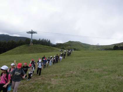 やまびこを楽しんだ後、下山しました。急な坂道に「足が勝手に進む」と叫びながら降りている子もいました。