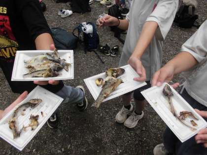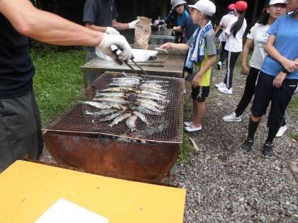 魚つかみは、自然にふれながら魚を捕まえる体験を通して、命の大切さや食べ物への感謝の気持ちを学び、仲間と協力する楽しさを味わう活動です。