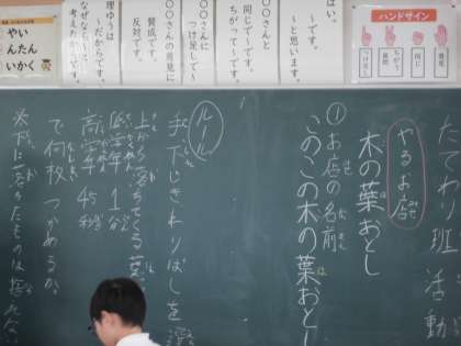 今日は、その決まったお店の名前決めやルール決めを班のみんなで協力して話し合っていました。