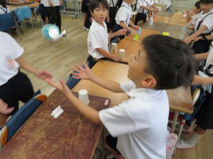ついに2年生の中のでお店屋さんとお客さんにわかれて、作ったおもちゃでおもちゃランドを開き、遊びました。