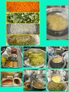 タンタンめんは、チンゲンサイ、もやし、にんじんを使った汁めんに、牛ひき肉、豚ひき肉、白ねぎ、しょうが、にんにくをごま油で香りよくいため、テンメンジャンや赤みそなどで味付けした肉みそを配缶時にのせて食べます。