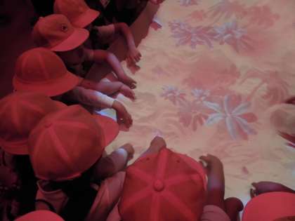 はじめに、クウェートに行ってきました。子どもたちは動く画面一つ一つに反応して楽しそうにしていました。