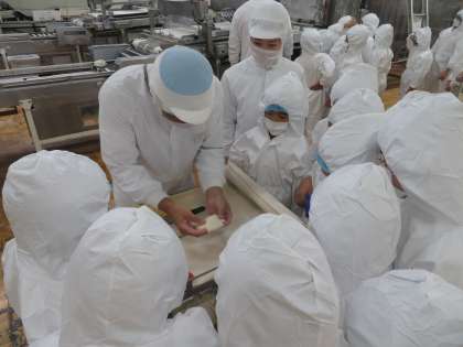 大きな機械でパンが作られていく様子や、手作業で行われている作業に、子どもたちは目を輝かせて見入っていました。