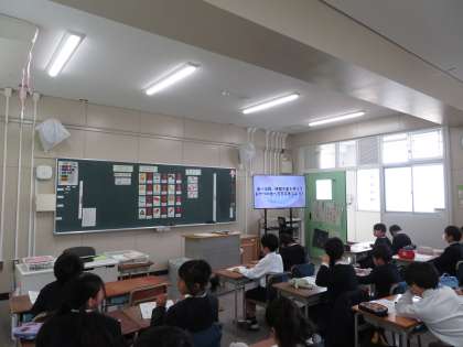 栄養教諭を招き、「おやつについて考えよう」という栄養指導の授業を行いました。
