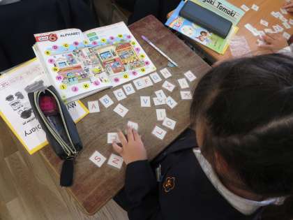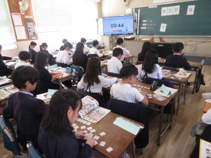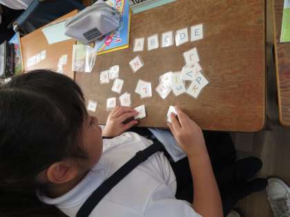外国語の学習では、アルファベットに親しんでいます。英語の歌を元気よく歌ったり、自分の名前のアルファベットを見つけたりしながら、楽しそうに学習しています!今日はA〜Zまで正確に素早く並べる学習にも取り組みました。