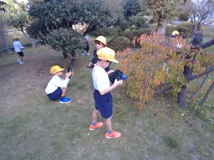 葉っぱの色の変化に気づいたり、秋に実る果実を見つけたりしていました。