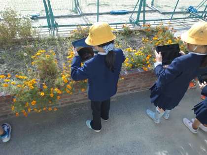 豊新小学校の学習園を散策し、いろいろな秋を見つけました。