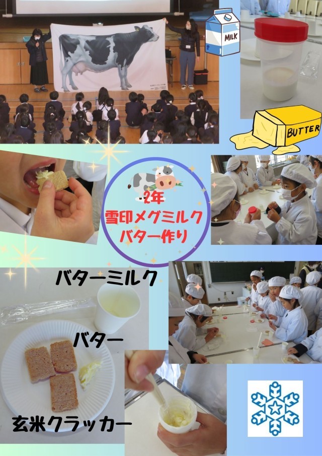 2年生は、雪印メグミルクの方をお招きし、「バター作り」の学習を行いました。