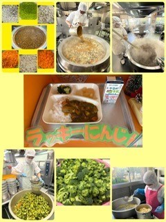 冬野菜カレーライスは、児童に人気のカレーライスに、冬が旬のだいこん、れんこんなどを使用しています。ラッキーにんじん何コはいってたかな。