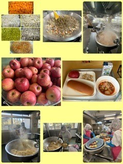 りんごは、1人1/4切ずつです。青森県産の甘くておいしいりんごです。