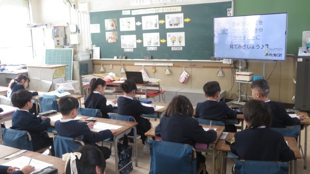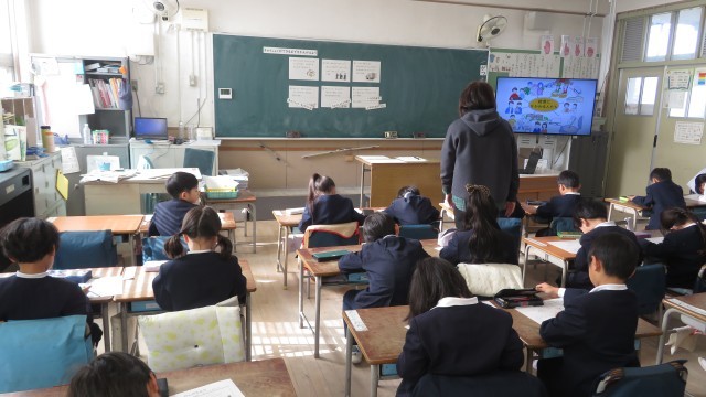 栄養指導として、給食に関わっている人たちについて学習しました。給食を作るために、たくさんの人が関わっていることを知り、子どもたちは驚いていました。学習した後は給食に関わっている人へのお手紙を書きました。