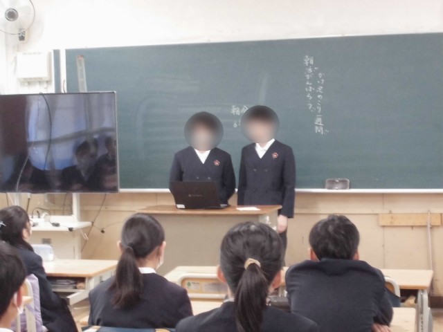 本日の児童朝会(オンライン)は、6年2組で行いました。