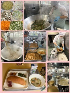 はくさいのとろみ煮は、令和6年度学校給食献立検討会議で、開発された新献立です。牛乳や小麦粉を使っていません。鶏肉、はくさい、たまねぎ、チンゲンサイ、にんじん、生のしいたけを使った中華風のシチューです。