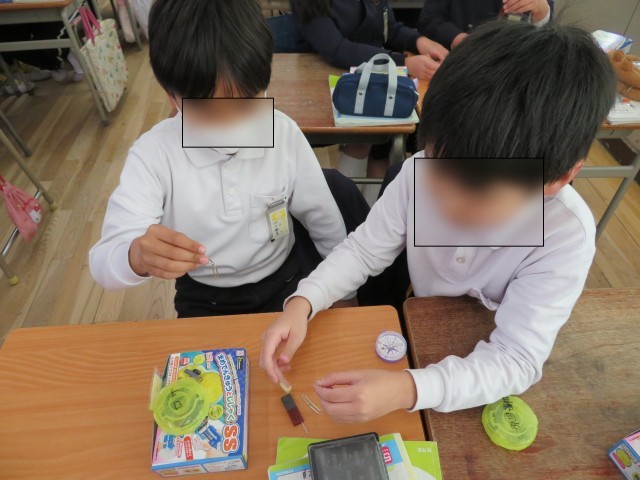 理科では「じしゃくのふしぎ」について学習しています。今日は「じしゃくについた鉄は、じしゃくになったのだろうか」という問題に取り組みました。ペアで協力しながら、楽しく実験に取り組んでいました。