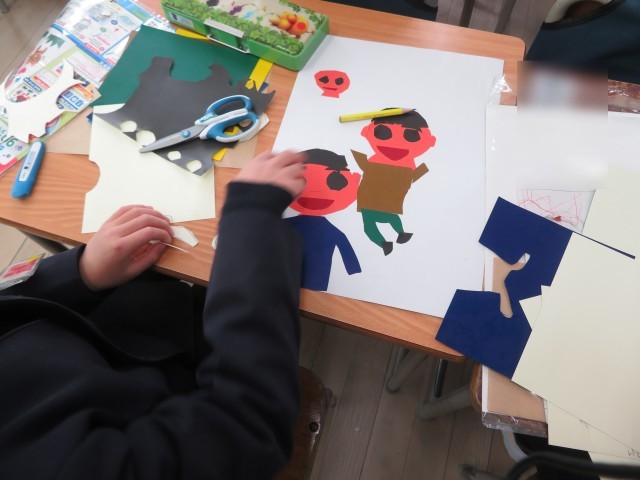 昔遊びをしている自分や友だちを作りました。色とりどりで素敵な作品がたくさん出来上がりそうです!!