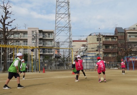 初めはポジションのローテーションやルールの理解が難しく、戸惑う姿も見られましたが、チームみんなで声をかけ合い助け合いながら、試合に取り組んでいました。