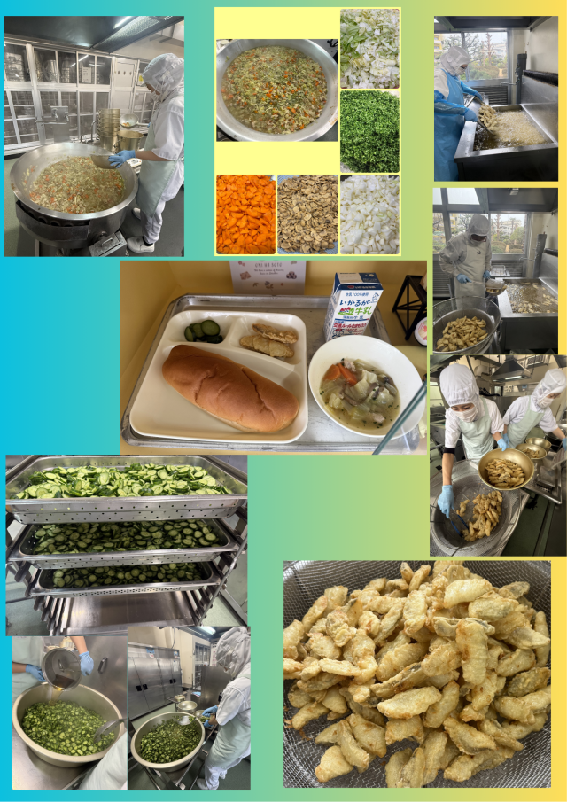 きゅうりのピクルスは、焼き物機で蒸したきゅうりに、ワインビネガー、うすくちしょうゆなどで作った調味液につけ、十分味を含ませます。